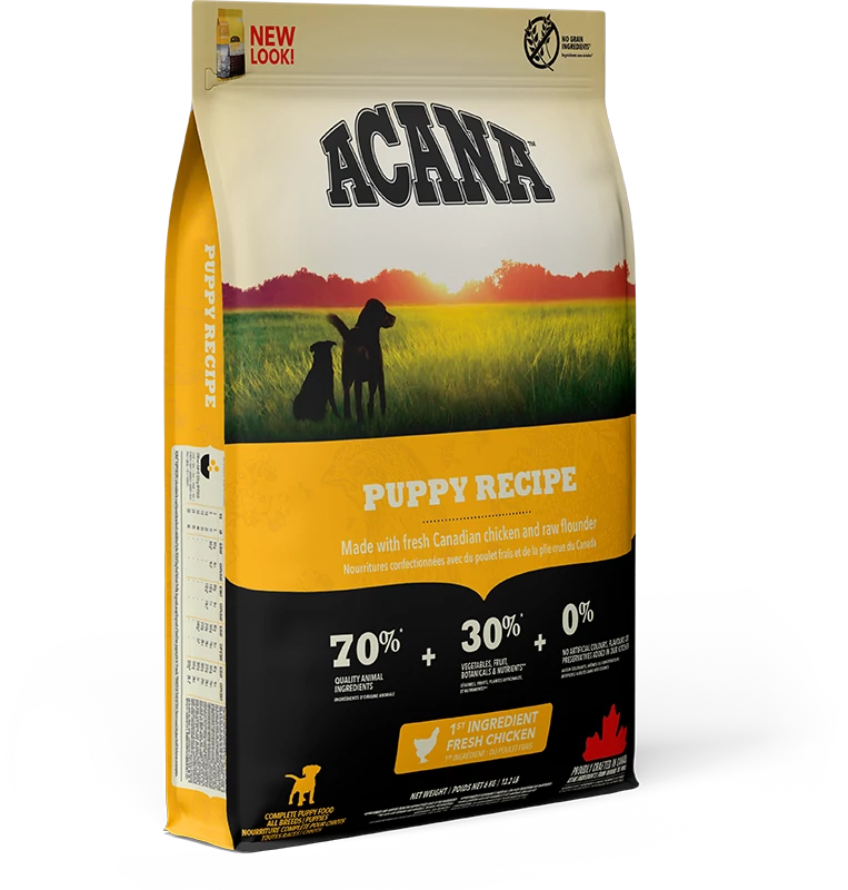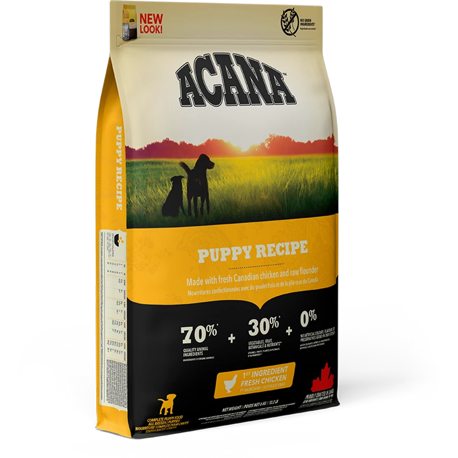 A TERMÉKNÉV ÉS A CSOMAGOLÁS MEGVÁLTOZOTT! ACANA Puppy & Junior helyett ACANA PUPPY A kölyök egy ragadozó, ezért biológiai szükségletét a sokféle húsban gazdag étrend elégíti ki, amely kiegészülhet kisebb mennyiségben gyümölcsökkel és zöldségekkel. Ezért az ACANA Puppy tele van friss csirkével, egész tojással és Csendes-óceánból fogott, nyers lepényhallal. A húsok és a halak frissen vagy nyersen érkeznek. A WholePrey™ arányainak megfelelően felhasznált húsok, belsőségek, porcok és egész halak lemásolják a természetes étrendet. ACANA nem tartalmaz gabonákat és gyorsan felszívódó szénhidrátokat, például rizst, tápiókát vagy burgonyát.