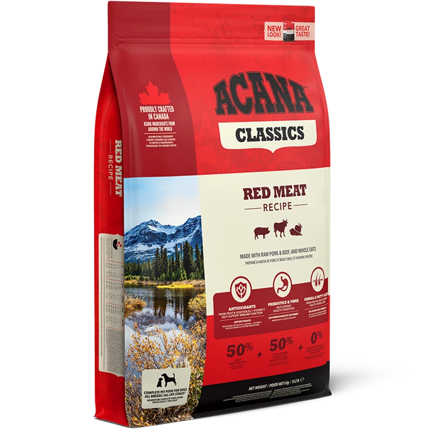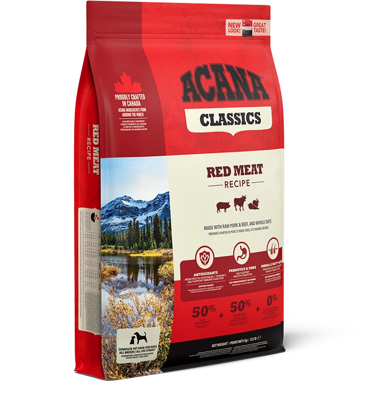 A modern kutyák nemcsak képesek megenni őseik táplálékát, hanem szükségük is van rá a kiváló egészségi állapot fenntartásához. Pontosan ezért készül az ACANA Red Meat nyers* marhából, dehidratált bárányból, és nyers* sertésből. Semmi csirke vagy bármiféle baromfiszármazék, csak kizárólag vörös húsok. Az ACANA Red Meat alacsony glikémiás gyöngyárpát, borsót és zabot tartalmaz, ezért a vércukor szintje stabil marad, csökkentve az elhízás kockázatát.