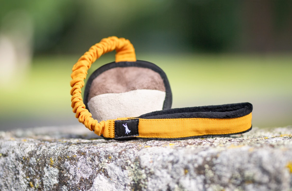 A fogantyú 38 cm hosszú és egészen 54 cm-ig nyúlik. A bungee szárnak köszönhetően ez a játék nagyon kellemes és biztonságos rángatási élményt nyújt mind a kutya, mind a gazdi számára. A fogantyú puha gyapjú béléssel rendelkezik, a gazdik örömére.