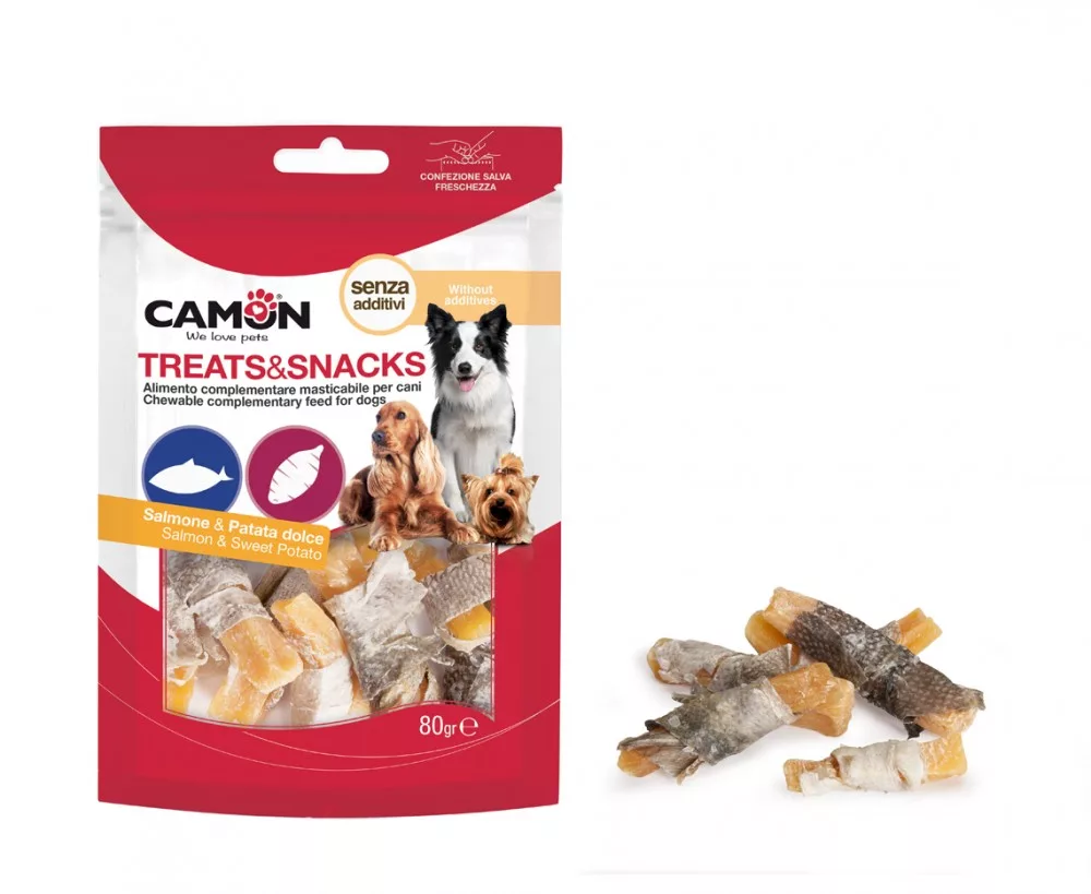 Camon édesburgonya jutalomfalatok lazacbőrrel 80 gramm