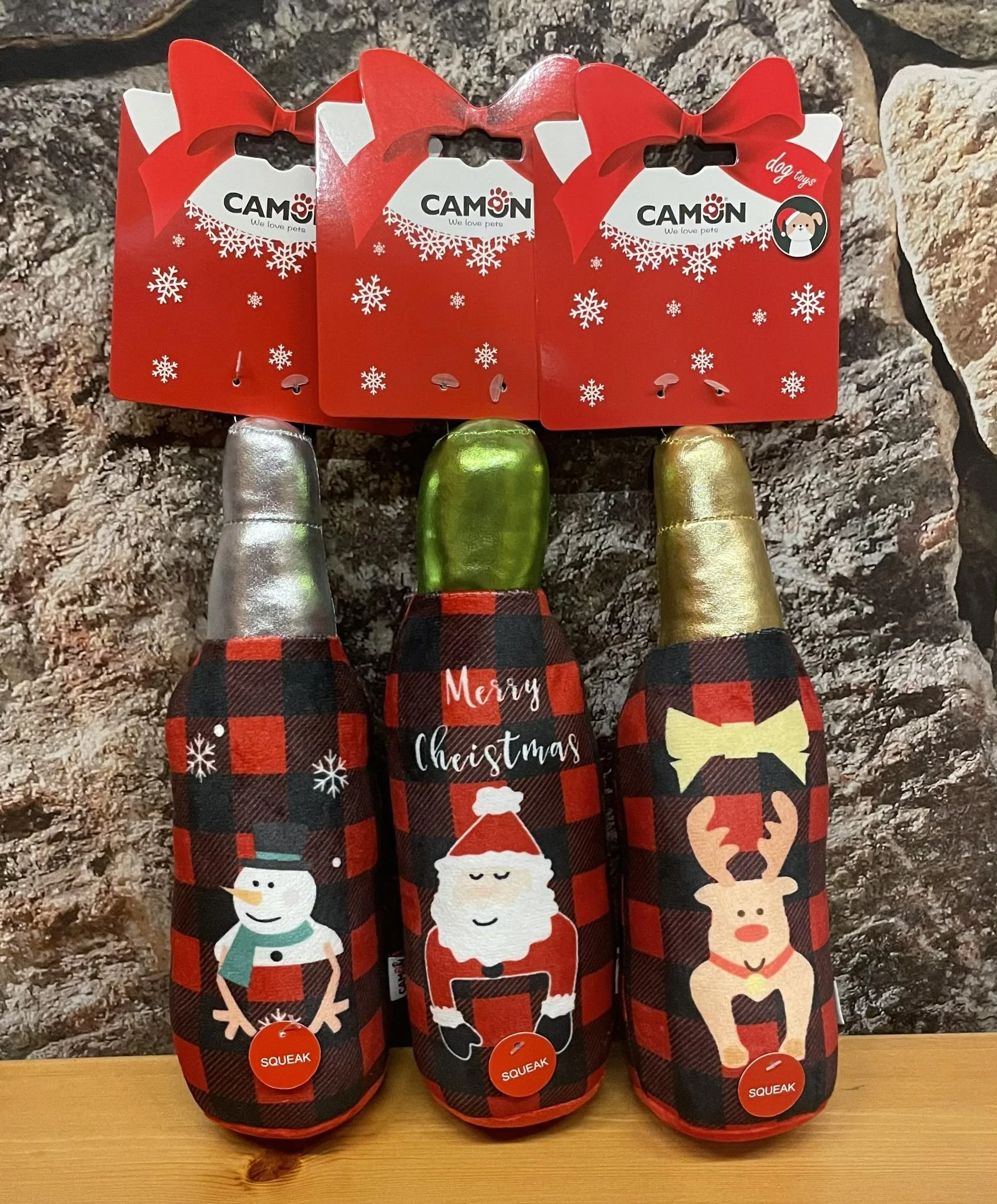 Sípolós poliészter játék, karácsonyi limitált kiadásban. Így kedvenced is "koccinthat" veled :)