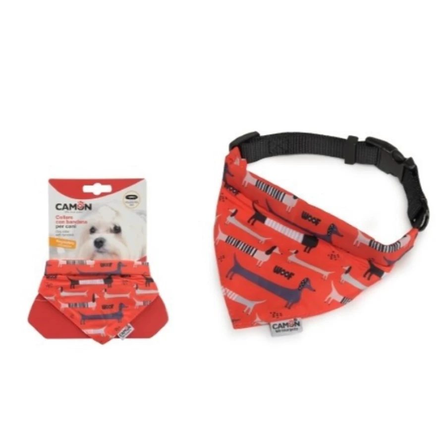 Camon tacsis nyakörves kendő piros mintás, állítható 20x350/500mm - M-es méret