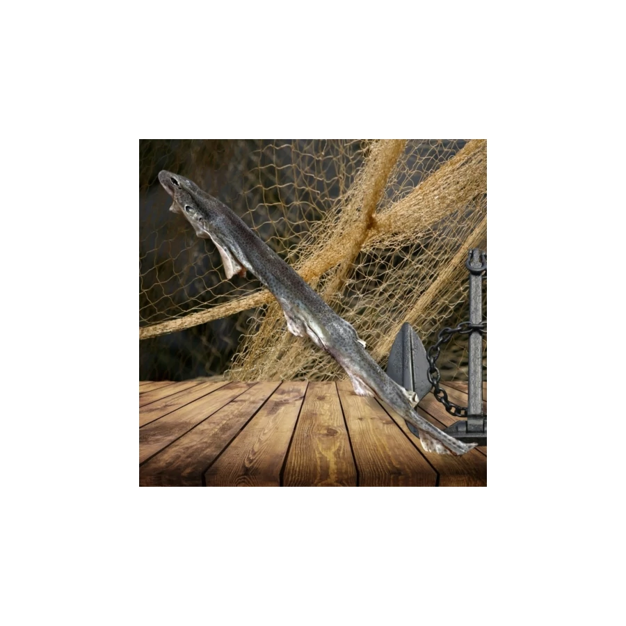 Ez az ínycsiklandozó és egészséges rágóka az Északi-tenger kispettyes macskacápája (Scyliorhinus canicula), melynek természetvédelmi státusza nem fenyegetett, populációja stabil és összhangban van a halászati előírásokkal, így biztosítunk afelől, hogy termékünk nem veszélyeztetett cápafajtából készül.