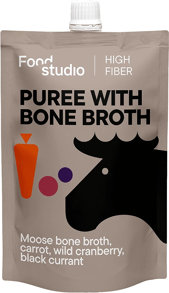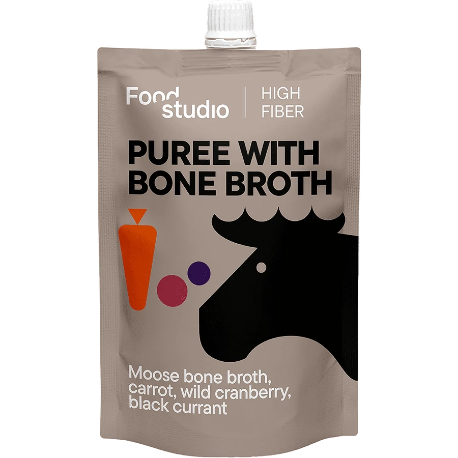 A püré alapját 77%-ban a magyar piacon igen közkedvelt Food Studio jávorszarvas csontleves adja, amelyet sárgarépa, vad tőzegáfonya és fekete ribizli egészít ki. Az eledel jól illeszthető a kutyák mindennapi étrendjéhez.