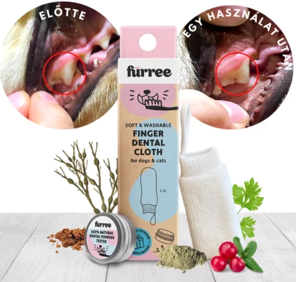 A Fürree mosható, ujjra húzható fogtisztító kendő puha textilből készült, gyengéden segít eltávolítani a lepedéket kedvenced fogairól és ínyéről, ezáltal megelőzhető a fogkő képződés és a kellemetlen szájszag is. Kiváló választás a napi szájápolási rutin részeként – különösen olyan gazdiknak, akik természetes, vegyszermentes megoldást keresnek.