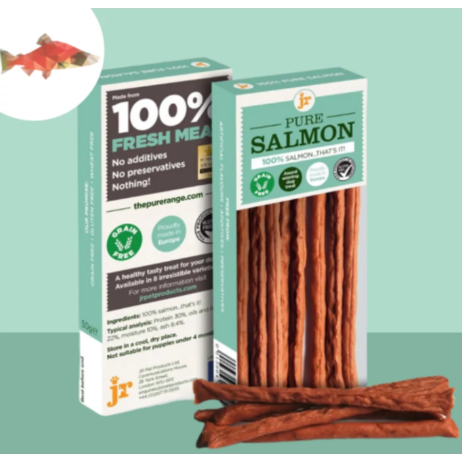 100% természetes, levegőn szárított lazac stick jutalomfalat kutyáknak. Használd tréning snack-ként, jutalomfalattal tölthető játékokba. Kölyökkutyáknak is adható 4 hetes kortól. Monoprotein fehérje, allergiásoknak is ajánlott!