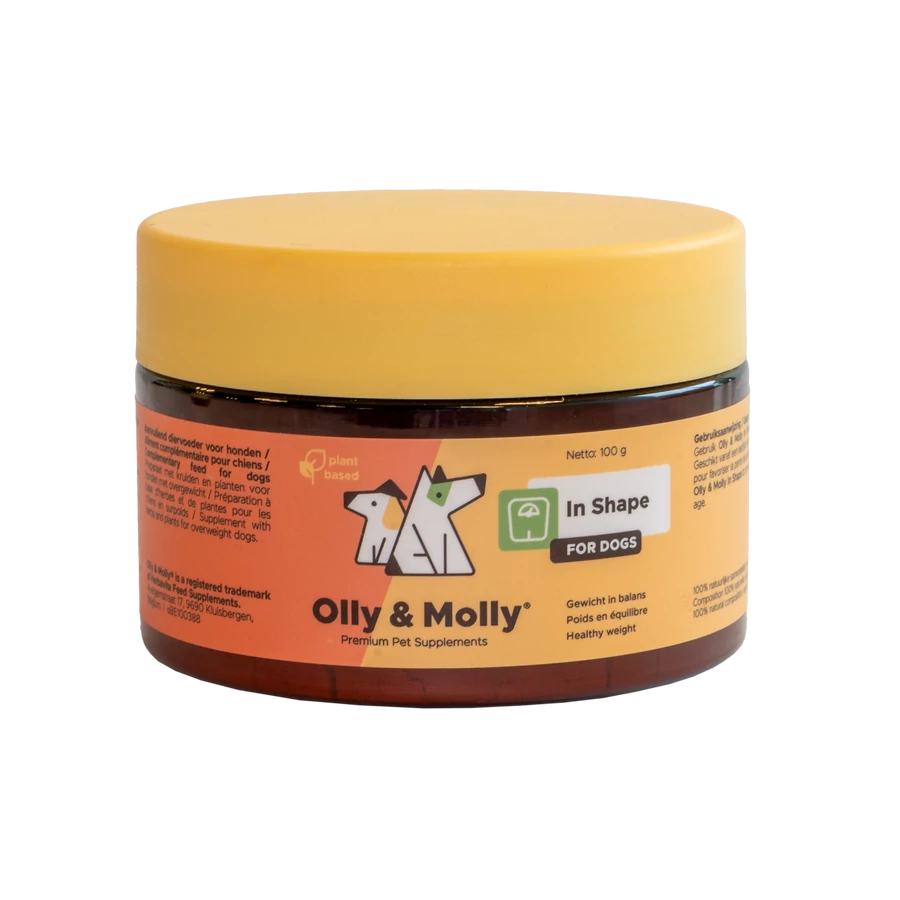 Az Olly & Molly In Shape napi kiegészítőként használható a kutya testsúlyának kiegyensúlyozására, különösen azoknál a kutyáknál, akik elhízásra hajlamosak, ivartalanítottak, kevésbé aktívak, idősek, mozgáskorlátozottak vagy túlsúlyosak, illetve akiknek a súlyukat fent kell tartani.