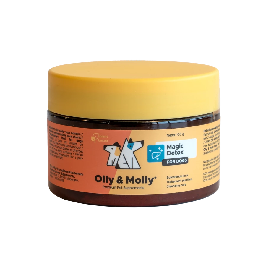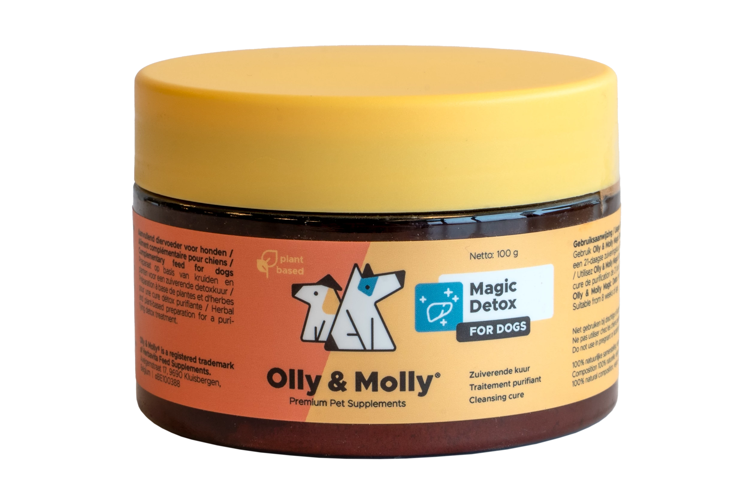 Ezért egy méregtelenítő kúra nagyszerű módja annak, hogy támogassuk kutyusod egészségét. Az Olly & Molly Magic Detox egy természetes tisztító kúra, amelyet kifejezetten a kutyák méregtelenítő szerveinek támogatására fejlesztettek ki, gondosan összeválogatott gyógynövény-keverékkel.