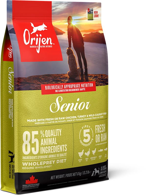A hiedelemmel ellentétben, a kutyának idős korában legalább annyi fehérjére van szüksége, mint felnőttkorban, hiszen kevésbé hatékonyan tudja előállítani a szükséges mennyiségű fehérjéket. Ha táplálék kevés fehérjét tartalmaz, akkor a szervezet pl. az izomzatból vonja el a hiányt, amely folyamat gyorsabb leépülést eredményezhet. A kevesebbet mozgó állatnak azonban kevesebb kalóriára van szüksége az elhízás és a cukorbetegség kialakulásának kockázat miatt. A 85 %1 különféle húsokból készült ORIJEN® Senior tápanyag-összetétele megfelel az idős ebek korral járó szükségleteinek.