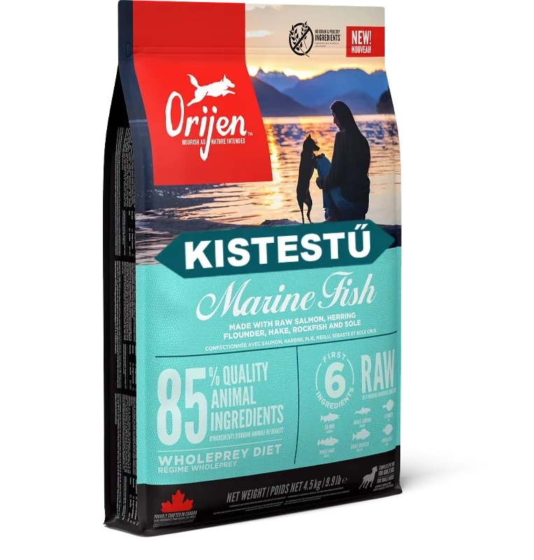megfőzött nyers 1 halak. A 85 % 2 halból készült ORIJEN® Small Breed Marine Fish egyértelműen a