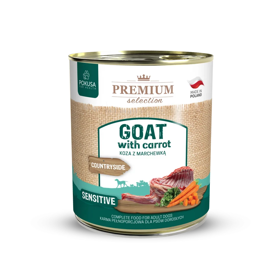 A Pokusa Premium Selection Countryside – kecske és répa egy teljes értékű, gabonamentes nedves eledel felnőtt kutyák számára. A recept kiváló minőségű kecskehúsra épül, friss zöldségekkel kiegészítve.