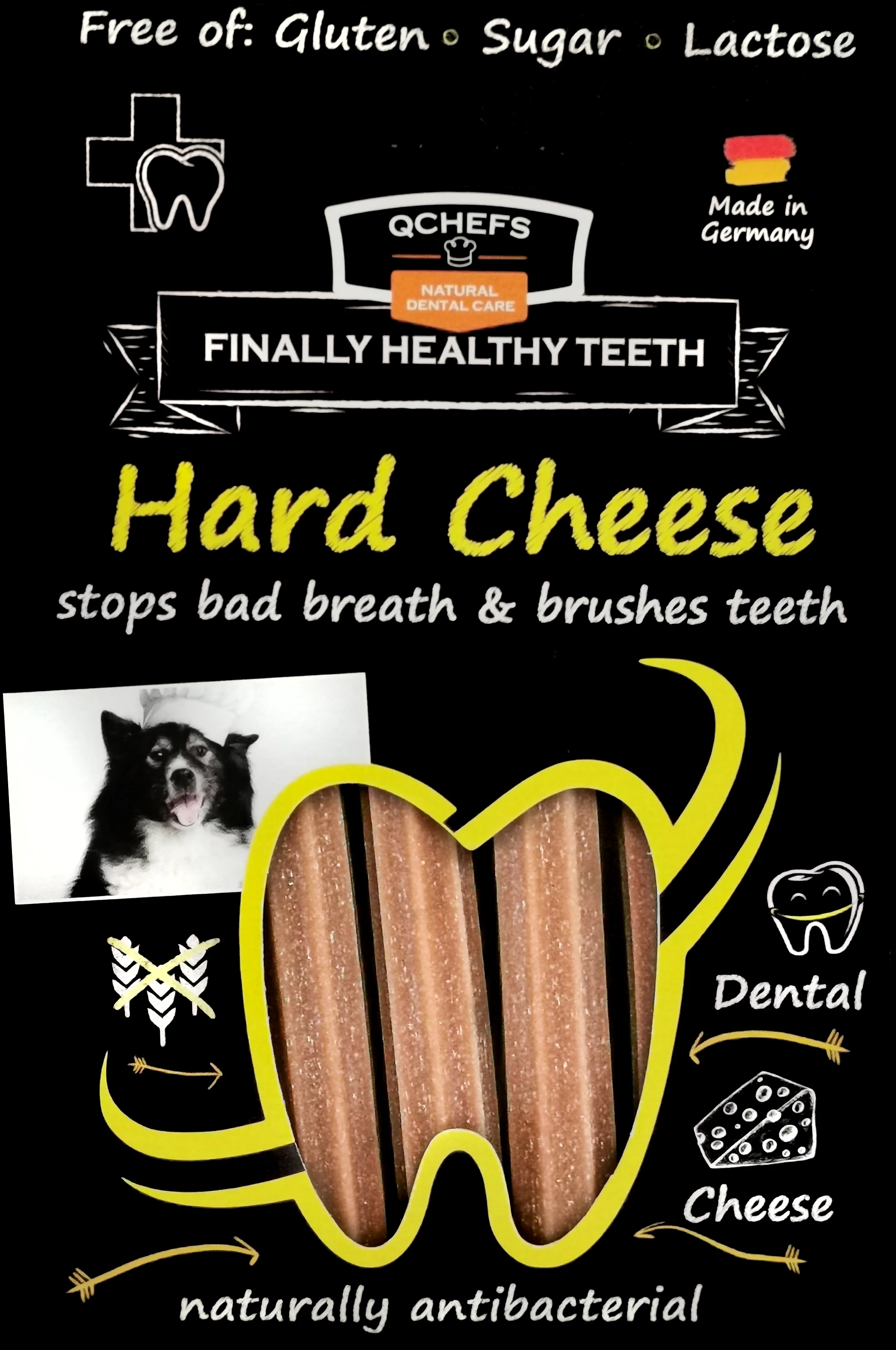 Végre Magyarországon is kapható olyan fogtisztító jutalomfalat és rágórúd kutyáknak és macskáknak, melyek 100%-ban természetesek, bizonyítottan hatékonyan működnek a szájszag és a fogkő ellen és nem hizlalnak! Új tudomány szerint a QCHEFS jutalomfalatok, rágórudak olyan peptidkomplexeket tartalmaznak, amelyek a baktériumok sejtfalához kötődnek, így nem tudnak tovább szaporodni. A rossz lehelet elmúlik, a fogkő feloldódik. Ezt támasztja alá az összetevők speciális kölcsönhatása és biztosítja a kiváló szájhigiéniát, az egészséget és a jó közérzetet kedvencünk számára. A termékeket Németországban, Anke Domaske dipl. mikrobiológus fejlesztette ki. Mindegy, hogy kutyád idős és már alig van foga, kistestű és inkább majszol, esetleg szeret ropogtatni, vagy egy igazi rágóhód, a QCHEFS termékei között megtalálod a kedvencedhez illő fogtisztítót!