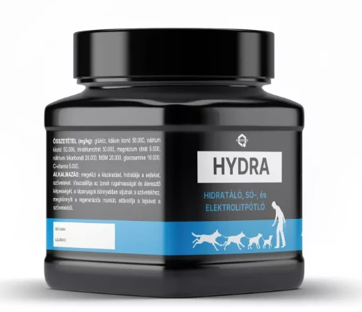 Vízben oldható rehidratáló, sópótló és enyhén ízületvédő speciális készítmény kutyáknak.