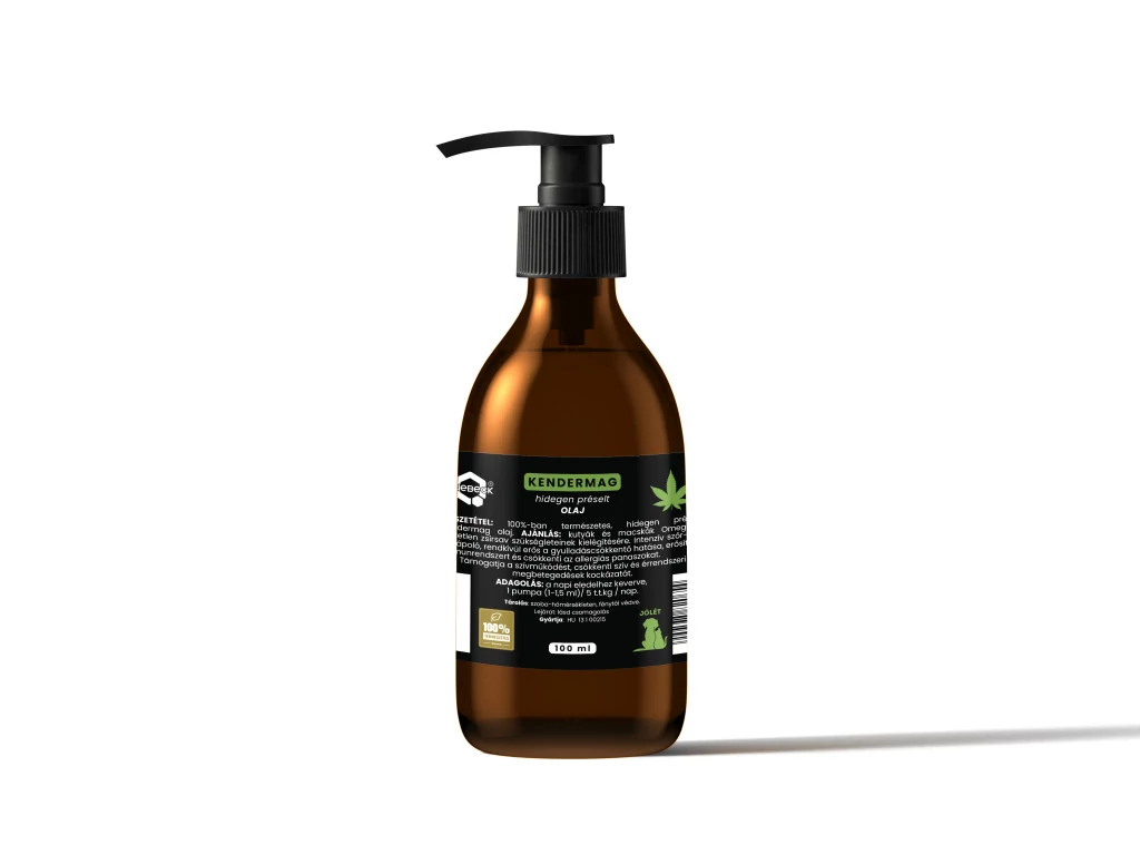 100%-ban természetes hidegen préselt (megőrzi minden értékes anyagait) kendermag olaj.