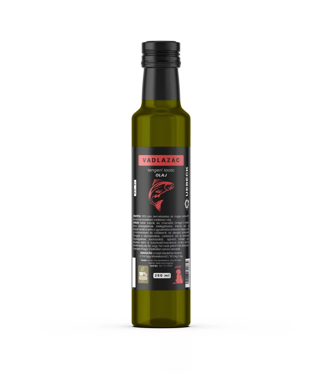 A lazacolaj az az olaj, amelyet a lazacból, a lazacfélékhez tartozó halakból nyernek ki. Ez az olaj kiváló forrása az Omega-3 zsírsavaknak, amelyek esszenciális zsírsavak, vagyis olyan zsírok, amelyeket a kedvencünk teste nem tud előállítani, ezért fontos, hogy megfelelő mennyiségben juttassunk belőlük a szervezetükbe az etetésen keresztül.