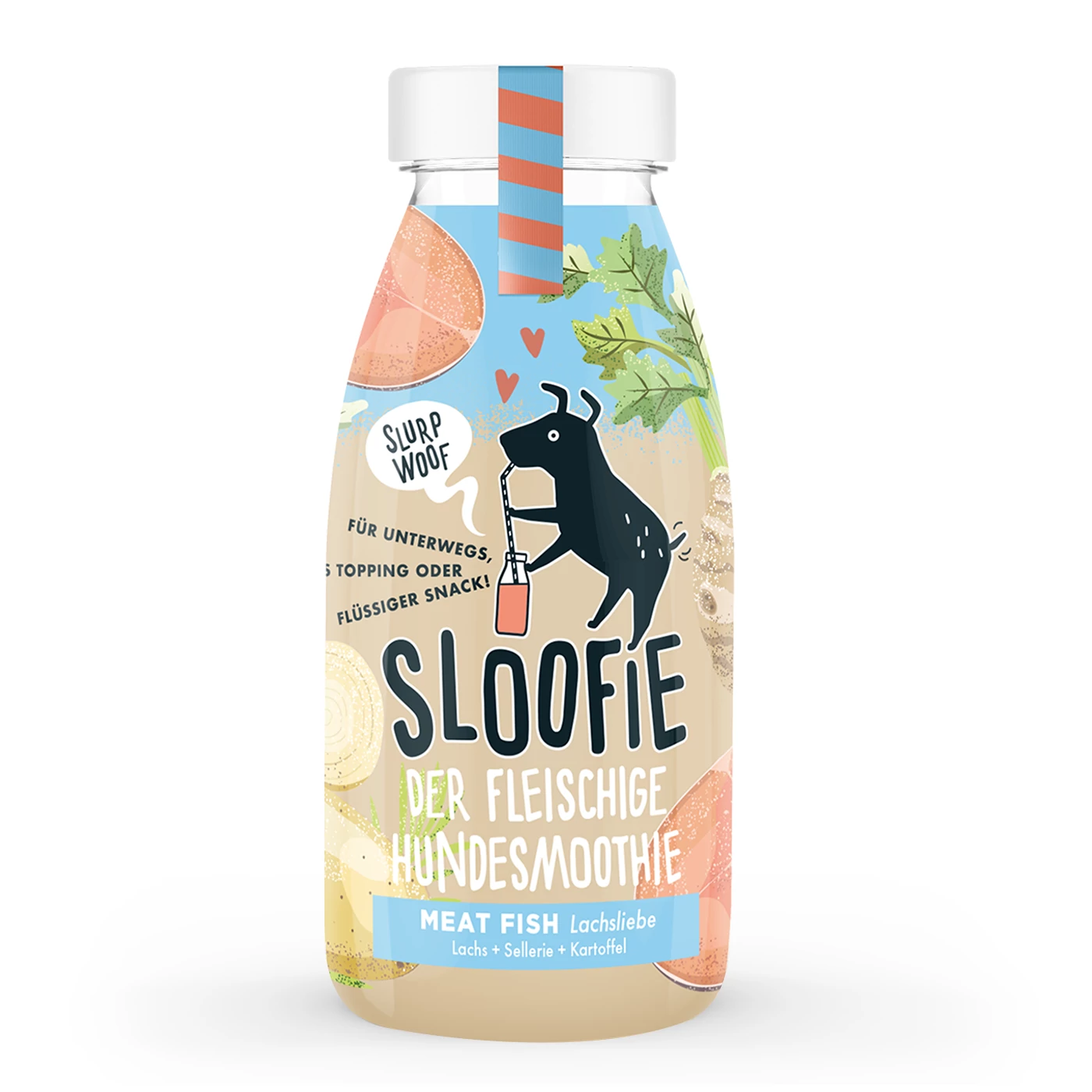 A SLOOFIE Meat Fish egy finom lazacos kutyasmoothie, amely zellerrel és burgonyával készült a természetes ízek és tápanyagok élvezetéért. Ez a smoothie gazdag omega-3-ban és vitamintámogatásban.