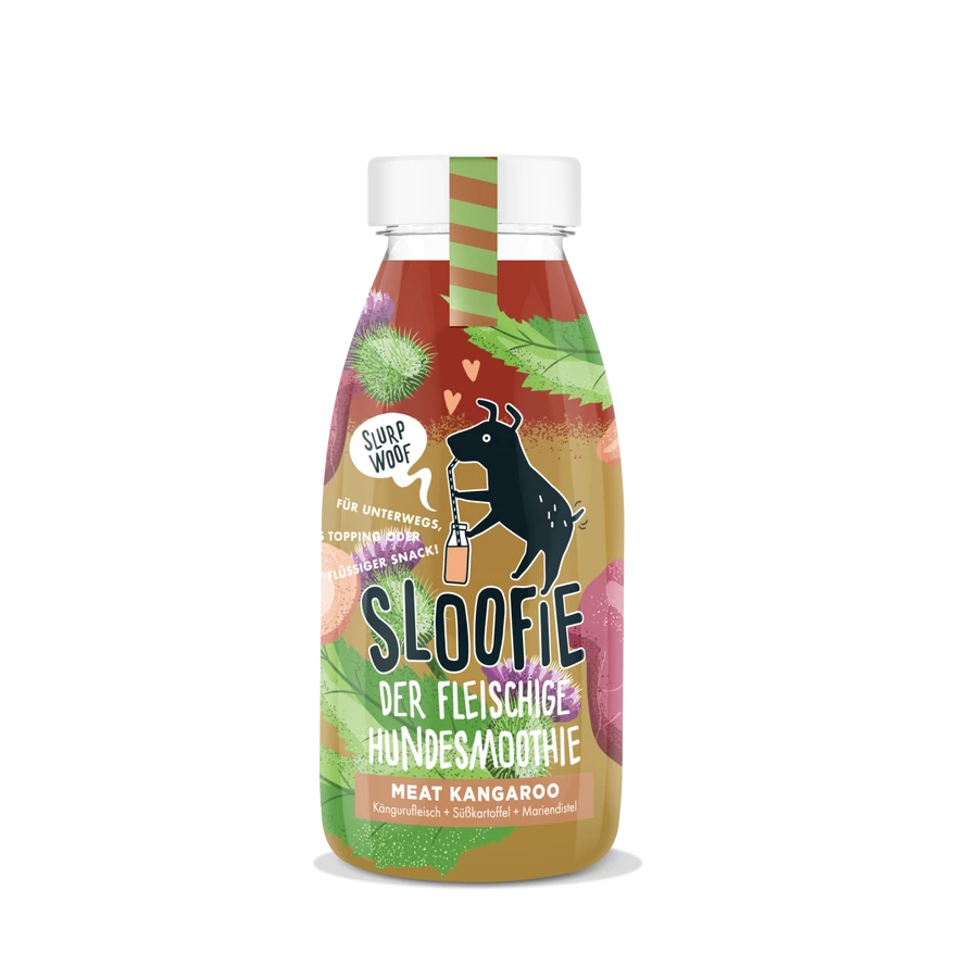 A SLOOFIE Meat Kangaroo egy prémium minőségű, kenguruhús alapú kutyasmoothie, amely különleges fehérjeforrást és természetes összetevőket kínál a kiegyensúlyozott táplálás támogatására.