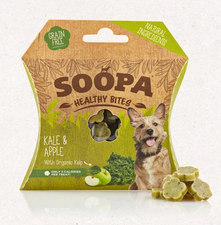 A Soopa vegán jutalomfalatok telis-tele vannak vitaminnal és ásványi anyagokkal, hipoallergének, mivel csak növényi összetevőket tartalmaznak, mégis gabonamentes receptúra alapján készülnek. Ezek a kis falatnyi jutik tökéletesen használhatóak tréningezésre. Zseb-barát kis zacskóba vannak csomagolva, így könnyű magaddal vinni.
