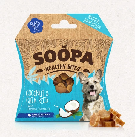 A Soopa vegán jutalomfalatok telis-tele vannak vitaminnal és ásványi anyagokkal, hipoallergének, mivel csak növényi összetevőket tartalmaznak, mégis gabonamentes receptúra alapján készülnek. Ezek a kis falatnyi jutik tökéletesen használhatóak tréningezésre. Zseb-barát kis zacskóba vannak csomagolva, így könnyű magaddal vinni.