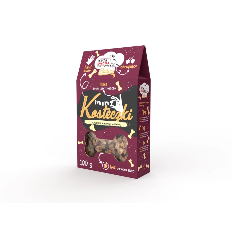 Syta Micha Dog Bakery Cookies Mini csontok szarvashússal, kókusszal és céklával 100g