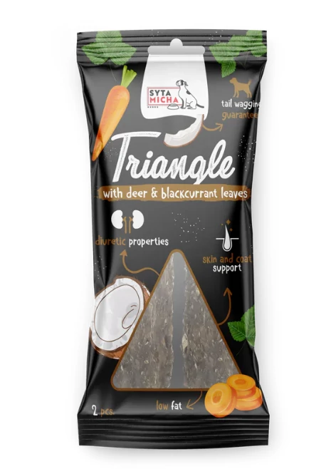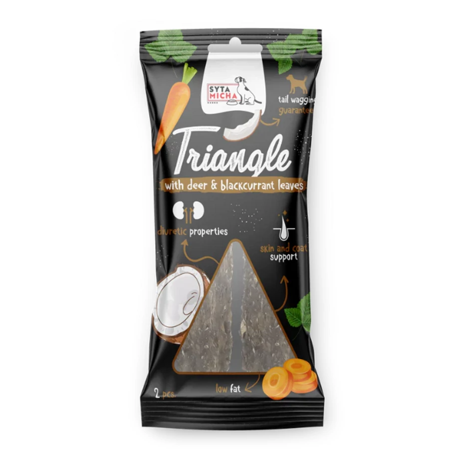 A Syta Micha Triangle rágóka szarvassal és kókuszdióval több, mint egy csemege – támogatást nyújt kutyusod egészségéhez.