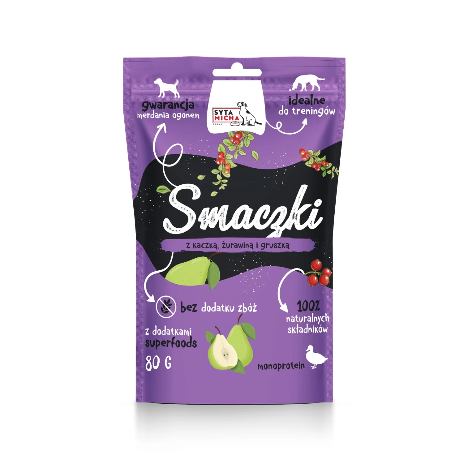 Syta Micha jutalomfalat kutyáknak kacsával, áfonyával és körtével 80g