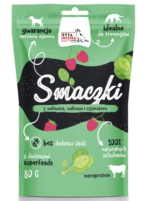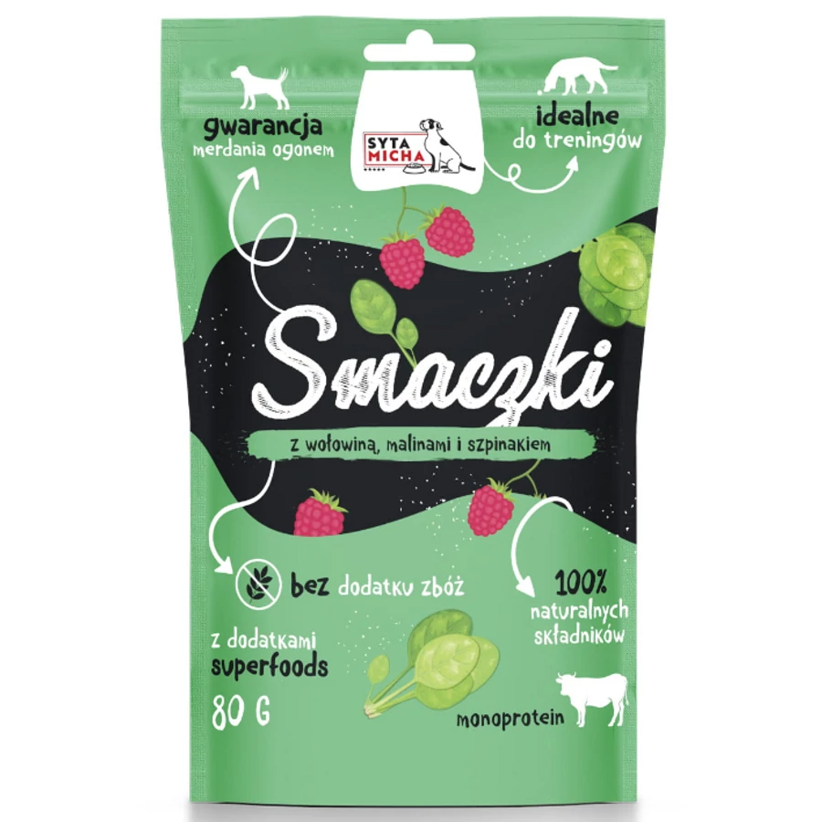 Syta Micha jutalomfalat kutyáknak marhahússal, málnával és spenóttal 80g