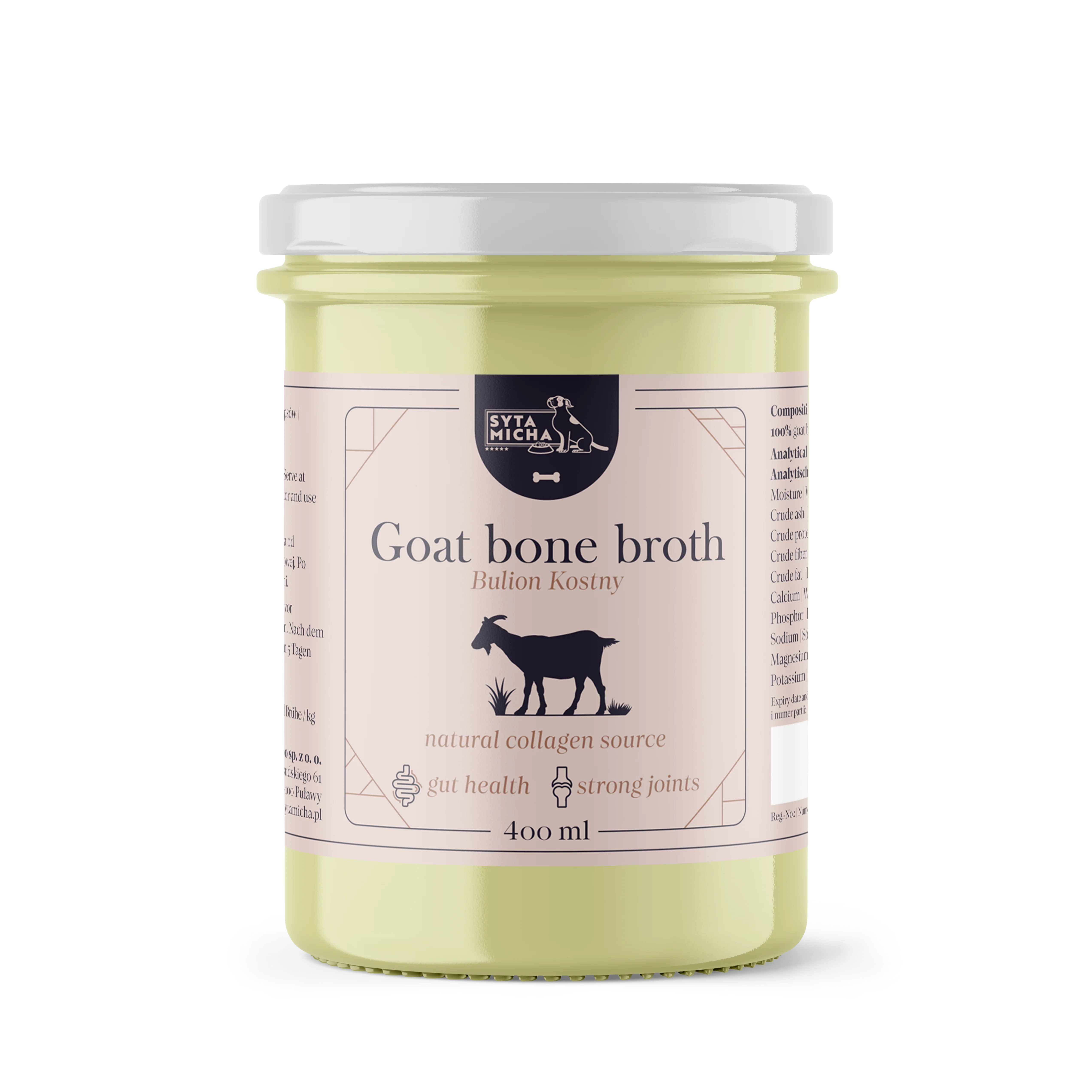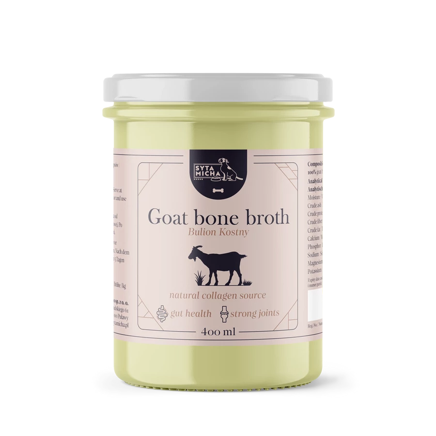 A kecske csontleves lassú főzéssel készül, közel 24 órán át. Ez a hőkezelési forma lehetővé teszi, hogy a csontokból mindazt kinyerjék, ami a legjobb és legegészségesebb a kutyák számára. Ezen kívül a Syta Michy kecske levesében található gazdag tápanyagtartalom növeli a kutya egészségügyi paramétereit, beleértve az immun-, emésztő-, idegrendszeri és oszteoartikuláris rendszerek javítását.