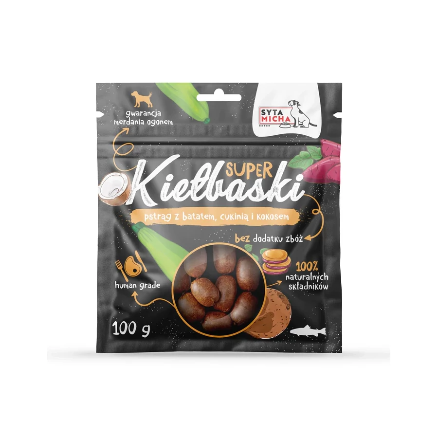 Ehetnek a kutyák kolbászt? Igen, mert a Syta Micha SUPER kolbászkái 100%-ban természetes jutalomfalatok minden szőrös pajti számára.