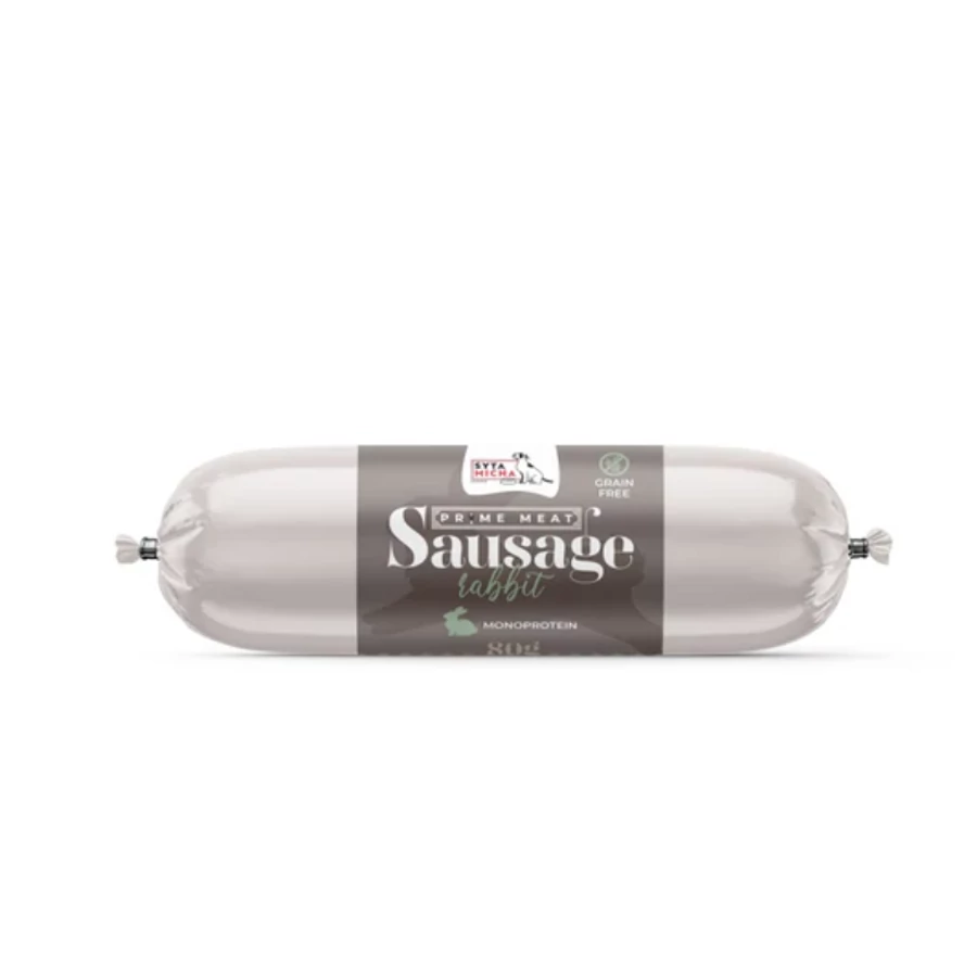 A Prime Meat nyulas húsrolád 97% nyúl izomhúst és 3% gluténmentes tápiókát tartalmaz. Ideális tréning snack érzékeny emésztőrendszerű vagy eliminációs diétán lévő kutyák számára. Az egyedülálló íz, csábító aroma, sima textúra, kemény, mégis lágy állag biztosítja a Syta Micha Prime Meat multifunkcionalitását.